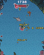 Přítomnost dravé paryby je samozřejmě překvapí, a tak se při jejím spatření snaží co nejrychleji dostat do nejbližší loďky, aby si zachránili svůj holý život. To ale jako správný žralok nesmíte připustit. Čím více nebožáků totiž strávíte, tím více skóre utržíte. Za každého dostáváte nejen body, ale také vám stoupá ukazatel nasycenosti. Ten, pokud zrovna nikoho nekonzumujete, klesá a jakmile se žraločí žaludek vyprázdní, přeživší plavci si můžou zhluboka oddychnout.
